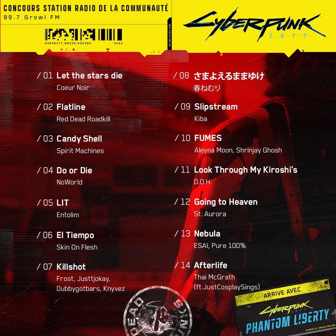 Les 12 à 15 morceaux gagnants seront diffusés sur la station radio indépendante de la communauté, Growl FM, dans Cyberpunk 2077: Phantom Liberty